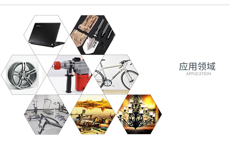5、 广泛用于3C产品、军工产品、汽车配件、电动工具、自行车、运动器材、渔具、灯具等行业。